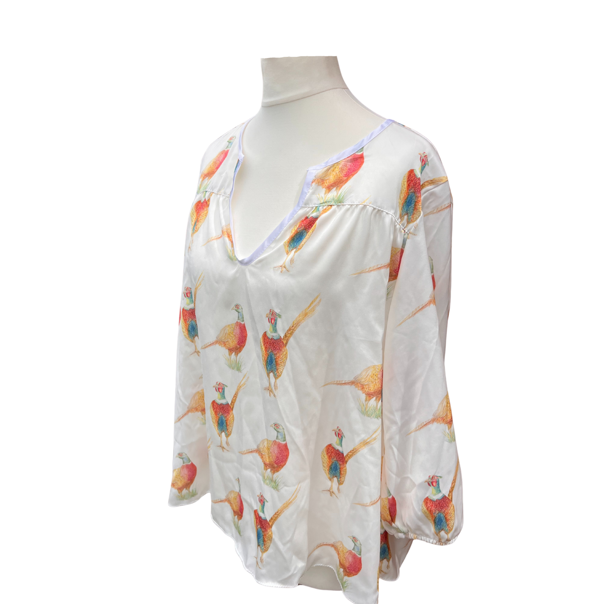 NEW! Women's Beautiful Pheasant V-neck T-Shirt, fresh cool Cotton perfect for your summer capsule wardrobe, the Pheasants detailing is taken from my artwork.